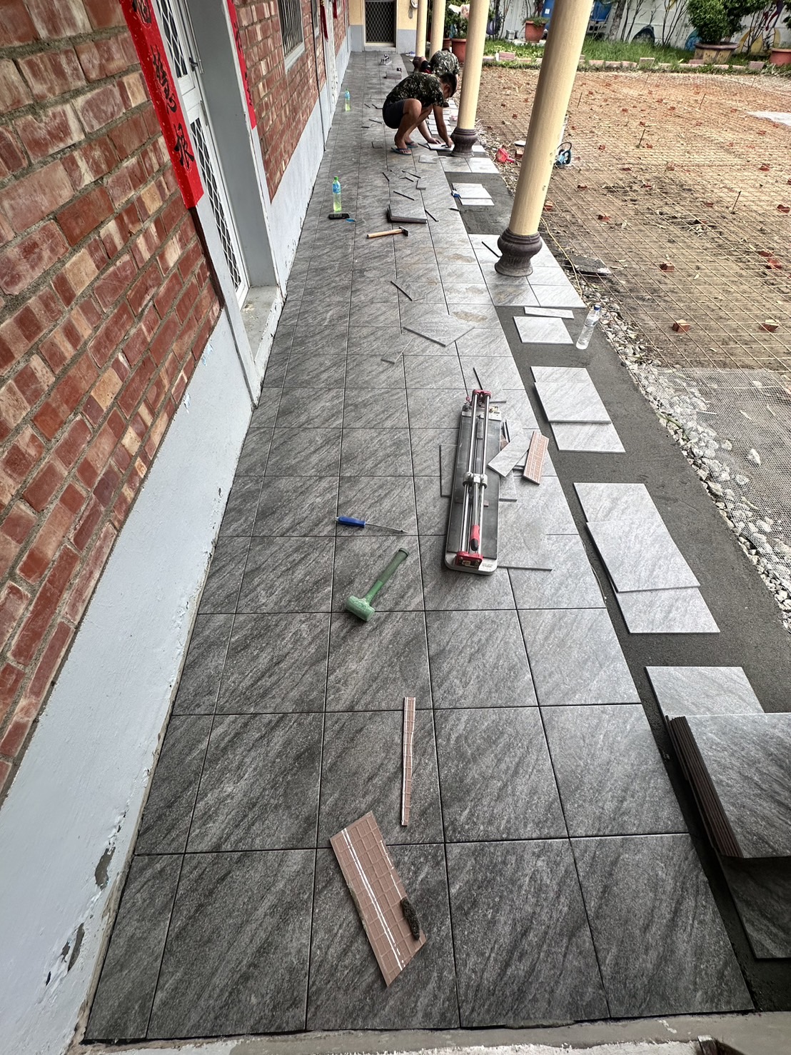本次承包停車場翻修、打除、灌漿、鋪設鐵焊鋼絲網、整體粉光、收縮縫、走廊翻修、空心處局部打除、鋪設30*30止滑磚,接到客戶需求後,我們會安排專業團隊到現場免費估價與丈量,仔細了解客戶的需求及現場狀況,接著,我們提供量身訂製的施工方案與透明報價,確保每個步驟符合客戶預期,施工過程中,我們嚴格把控工地安全,使用優質建材與精湛技術,確保施工質量,並定期向客戶報告進度,讓客戶安心。